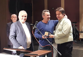 κ. Κυριάκο Αλεξανδρίδη παλαίμαχο ποδοσφαιριστή του ΠΑΟΚ αλλά και υπεύθυνο προπονητή ακαδημιών του ΠΑΟΚ την τιμητική πλακέτα απένειμε ο πρόεδρος της Κοζάνης κ. Αγάπιος Γαβριηλίδης.
