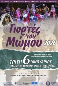Παρά τις αντίξοες καιρικές συνθήκες και τη βροχή, πραγματοποιήθηκαν το απόγευμα της Κυριακής οι «Γιορτές του Μώμου», με κορύφωση τη μεγάλη γιορτή των Μωμόγερων στο προαύλιο του 1ου Δημοτικού Σχολείου Πτολεμαΐδας, αποδεικνύοντας πως όταν η παράδοση συναντά τη συλλογική βούληση, τίποτα δεν μπορεί να τη σταματήσει. Η εκδήλωση υλοποιήθηκε μέσα από μια ουσιαστική σύμπραξη […]