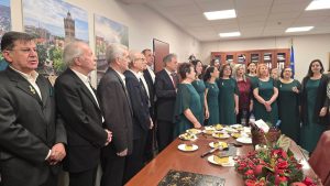 Τα Πρωτοχρονιάτικα Κάλαντα στον Δήμαρχο Κοζάνης Γιάννη Κοκκαλιάρη έψαλλε η Στρατιωτική Μουσική Μπάντα και η Φιλαρμονική Πανδώρα.