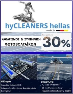 Υλοποιήσαμε μία επένδυση δια μέσω της hyCLEANERS hellas σε αυτόματο και καινοτόμο εξοπλισμό πλύσης -συντήρησης των Φωτοβολταϊκών πάνελ & Γιάλυνων επιφανειών οπως θερμοκήπια. Η hyCLEANERS Hellas,είναι η πρώτη εταιρεία στην Ελλάδα που εξειδικεύεται κυρίως στον καθαρισμό φωτοβολταϊκών συλλεκτών,με υπερσύγχρονα και καινοτόμα μέσα πλύσης γερμανικής τεχνολογίας, των Οίκων hyCLEANER και της LEWI QLEEN, προσφέρει οικολογικό καθαρισμό […]