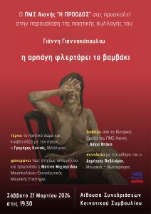 Ο ΠΜΣ Αιανής ” Η Πρόοδος” σας προσκαλεί στην παρουσίαση της ποιητικής συλλογής του Γιάννη Γιαννακόπουλου η αρπάγη φλερτάρει το βαμβάκι.