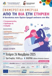 Το Ενιαίο Κοινωνικό Δίκτυο Δυτικής Μακεδονίας, σε συνεργασία με το Κέντρο Συμβουλευτικής Υποστήριξης Γυναικών Φλώρινας, διοργανώνει ημερίδα με στόχο την ενημέρωση και ευαισθητοποίηση για την έμφυλη και ενδοοικογενειακή βία, καθώς και τη στήριξη των γυναικών που την αντιμετωπίζουν. Θεματικές: γυναικοκτονίες, πρόληψη, μηχανισμοί προστασίας, υπηρεσίες στήριξης. Πληροφορίες 📍 InSocialHub, Καμβουνίων 16Α, Κοζάνη 📞 2461 461465 📧 […]