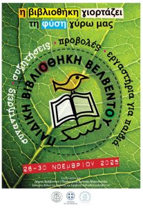 Ο Δήμος Βελβεντού συνδιοργανώνει με την Περιφέρεια Δυτικής Μακεδονίας και τον Σύλλογο των φίλων της Παιδικής και Εφηβικής Βιβλιοθήκης Βελβεντού «Annete Schlumberger» εκδηλώσεις στην Παιδική Βιβλιοθήκη από τις 26 έως τις 30 Νοεμβρίου 2025. Στη φετινή γιορτή της βιβλιοθήκης επιλέξαμε να αναδείξουμε την κυρίαρχη αντίληψη λειτουργίας των παιδικών βιβλιοθηκών που βασίζεται στη θεματική παρουσίαση. Θα […]