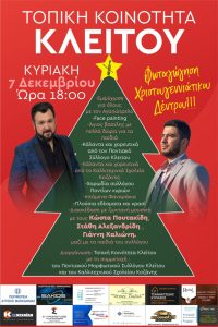 Tην Κυριακή 7 Δεκεμβρίου η φωταγώγηση του Χριστουγεννιάτικου Δέντρου στην Κοινότητα Κλείτου Κοζάνης.