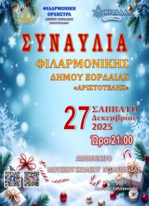 “Πιστοί στο ραντεβού μας, και αυτή τη χρονιά, θα αποχαιρετίσουμε το 2025 με ένα πλούσιο πρόγραμμα από γιορτινές μελωδίες και μουσικές που αγαπήσαμε, από όλον τον κόσμο.Το Σάββατο 27 Δεκεμβρίου, σας περιμένουμε όλους στο αμφιθέατρο του Μουσικού Σχολείου Πτολεμαΐδας, στις 21:00.”