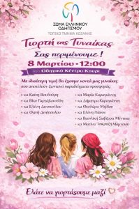 Ο Δήμος μας τιμά τη Γυναίκα – τη δύναμη, την έμπνευση και την ανιδιοτέλεια που προσφέρει καθημερινά στην οικογένεια, στην κοινωνία και στη ζωή μας. Κυριακή 08 Μαρτίου Ώρα 19:00 Tραμπάντζειο Γυμνάσιο Σιάτιστας Μια βραδιά αφιερωμένη στη σύγχρονη γυναίκα, με ομιλίες, βιωματικό εργαστήριο, έκθεση ζωγραφικής και τη συμμετοχή της Χορωδίας Γυναικών Σιάτιστας. […]