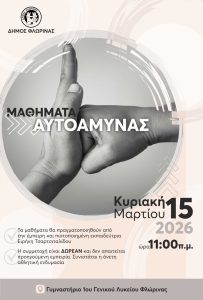 Ο Δήμος Φλώρινας, στο πλαίσιο των δράσεών του για την προαγωγή της ασφάλειας, της άθλησης και της ευεξίας των πολιτών, διοργανώνει μαθήματα αυτοάμυνας την Κυριακή 15 Μαρτίου 2026, στις 11:00 π.μ., στο γυμναστήριο του 1ου Γενικού Λυκείου Φλώρινας. Η δράση απευθύνεται σε πολίτες όλων των ηλικιών και έχει ως στόχο: την εκμάθηση βασικών τεχνικών αυτοάμυνας […]
