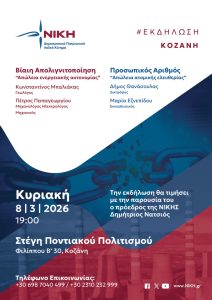 Εκδήλωση της ΝΙΚΗΣ στην Κοζάνη την Κυριακή 8 Μαρτίου: «Βίαιη απολιγνιτοποίηση και Προσωπικός Αριθμός», παρουσία του προέδρου της ΝΙΚΗΣ, Δημήτρη Νατσιού Κυριακή 8 Μαρτίου 2026 19:00, Στέγη Ποντιακού Πολιτισμού, Φιλίππου Β’ 30, Κοζάνη