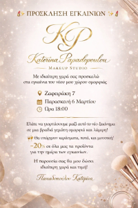 Με ιδιαίτερη χαρά σας προσκαλώ στα εγκαίνια του νέου μου χώρου ομορφιάς 📍 Ζαφειράκη 7📅 Παρασκευή 6 Μαρτίου🕒 Ώρα 18:00 Ελάτε να γιορτάσουμε μαζί αυτό το νέο ξεκίνημα σε μια βραδιά γεμάτη ομορφιά και λάμψη! 🥂 Θα υπάρχουν κεράσματα, ποτά, και μουσική!-20% σε όλα μας τα προϊόντα για την ημέρα των εγκαινίων. Η παρουσία σας […]