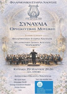 Η Φιλαρμονική του Δήμου Κοζάνης «Πανδώρα» συμμετέχει σε μια ξεχωριστή καλλιτεχνική σύμπραξη με τη Φιλαρμονική Εταιρεία Ναούσης, αφιερωμένη στη Θρησκευτική Μουσική, συγκροτώντας μαζί ένα ενιαίο και αρμονικό μουσικό σώμα, μέσα από έργα του Giuseppe Verdi, του George Frideric Handel και άλλων σπουδαίων συνθετών. Η εν λόγω συναυλία επιχειρεί να αναδείξει όχι μόνο το ύφος και […]