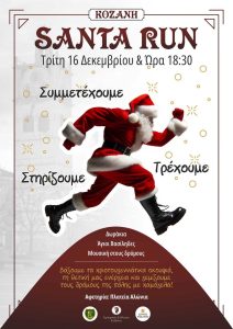Ο Σύλλογος μας συνδιοργανώνει με το Δήμο Κοζάνης και τον Εμπορικό Σύλλογο Κοζάνης συμβολικό, μη αγωνιστικό αγώνα δρόμου Santa Run με φιλανθρωπικό χαρακτήρα. Είναι ένας αγώνας ανθρωπιάς, αλληλεγγύης και προσφοράς με στόχο να συγκεντρωθούν τρόφιμα για τους συμπολίτες μας που έχουν ανάγκη . Η εκκίνηση θα δοθεί από την πλατεία Αλώνια την Τριρη 16.12.2025 στις […]