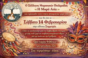 Ετήσιος αποκριάτικος χορός του Συλλόγου Μικρασιατών Πτολεμαΐδας, το Σάββατο 14 Φεβρουαρίου .