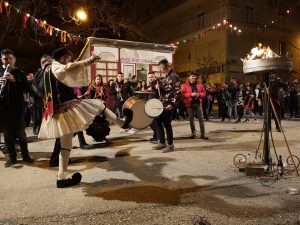 H εμφάνιση του Φανού Κρεβατάκια, στην κεντρική πλατεία Κοζάνης, το βράδυ της Παρασκευής 13/2.