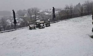 Χιονισμένο το σκηνικό σήμερα,Πέμπτη 2 Απριλίου, στο Νυμφαίο.