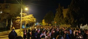 Πλήθος πιστών, στην περιφορά του Επιταφίου στον I.N. Aγ. Αθανασίου στην Κοζάνη, το βράδυ της Μ. Παρασκευής.