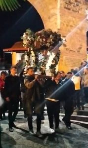 Πλήθος πιστών, στην περιφορά του Επιταφίου στo Eμπόριο Εορδαίας, το βράδυ της Μ. Παρασκευής.