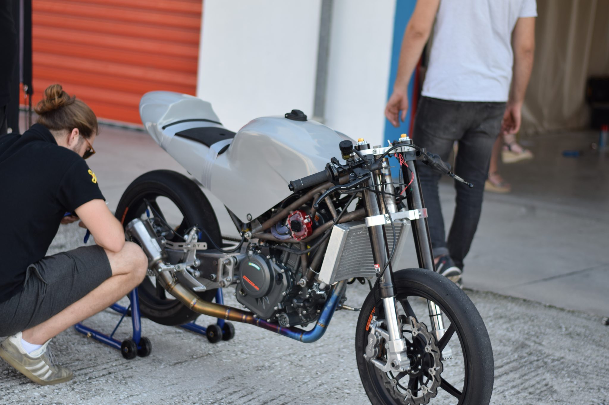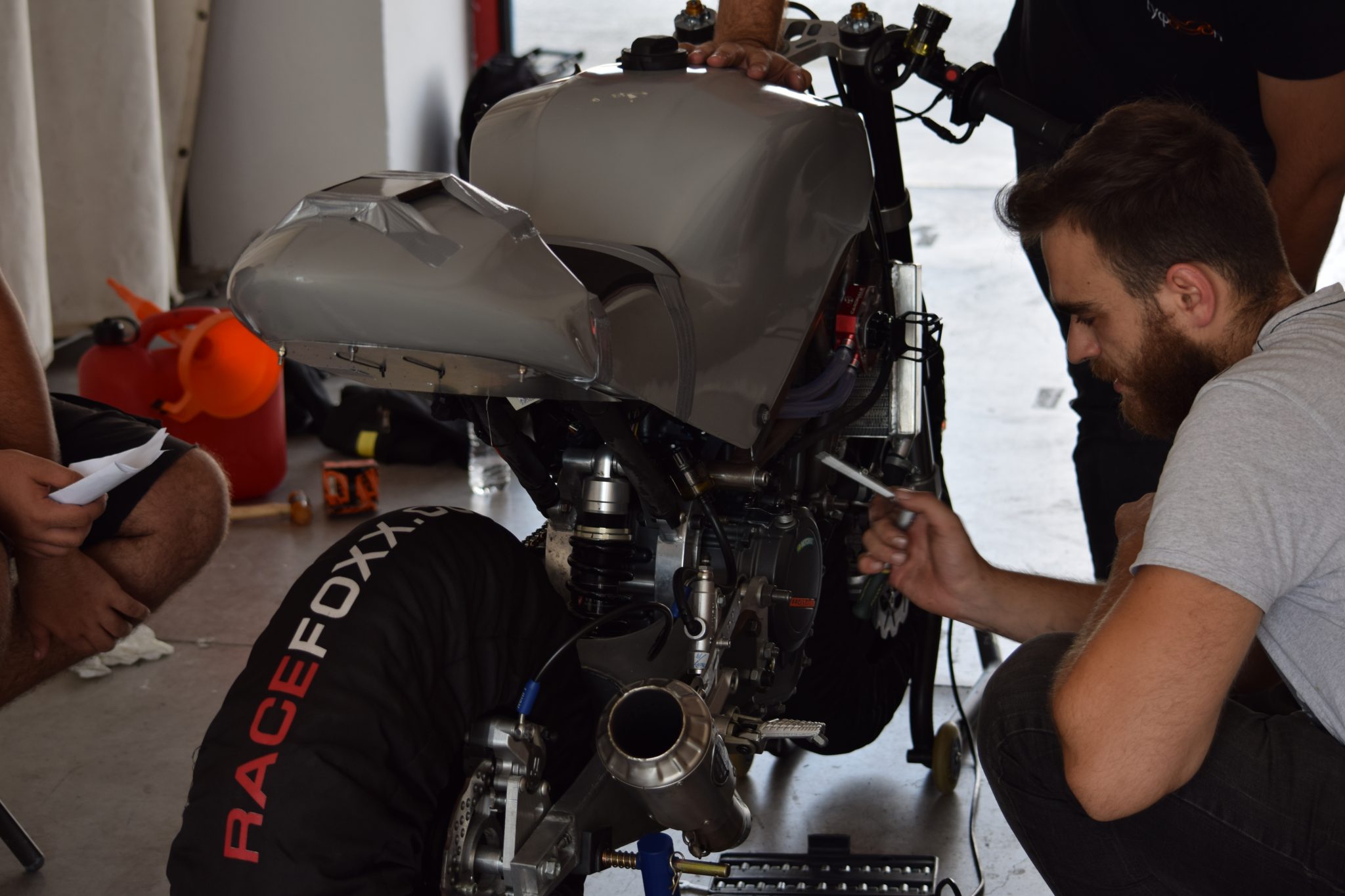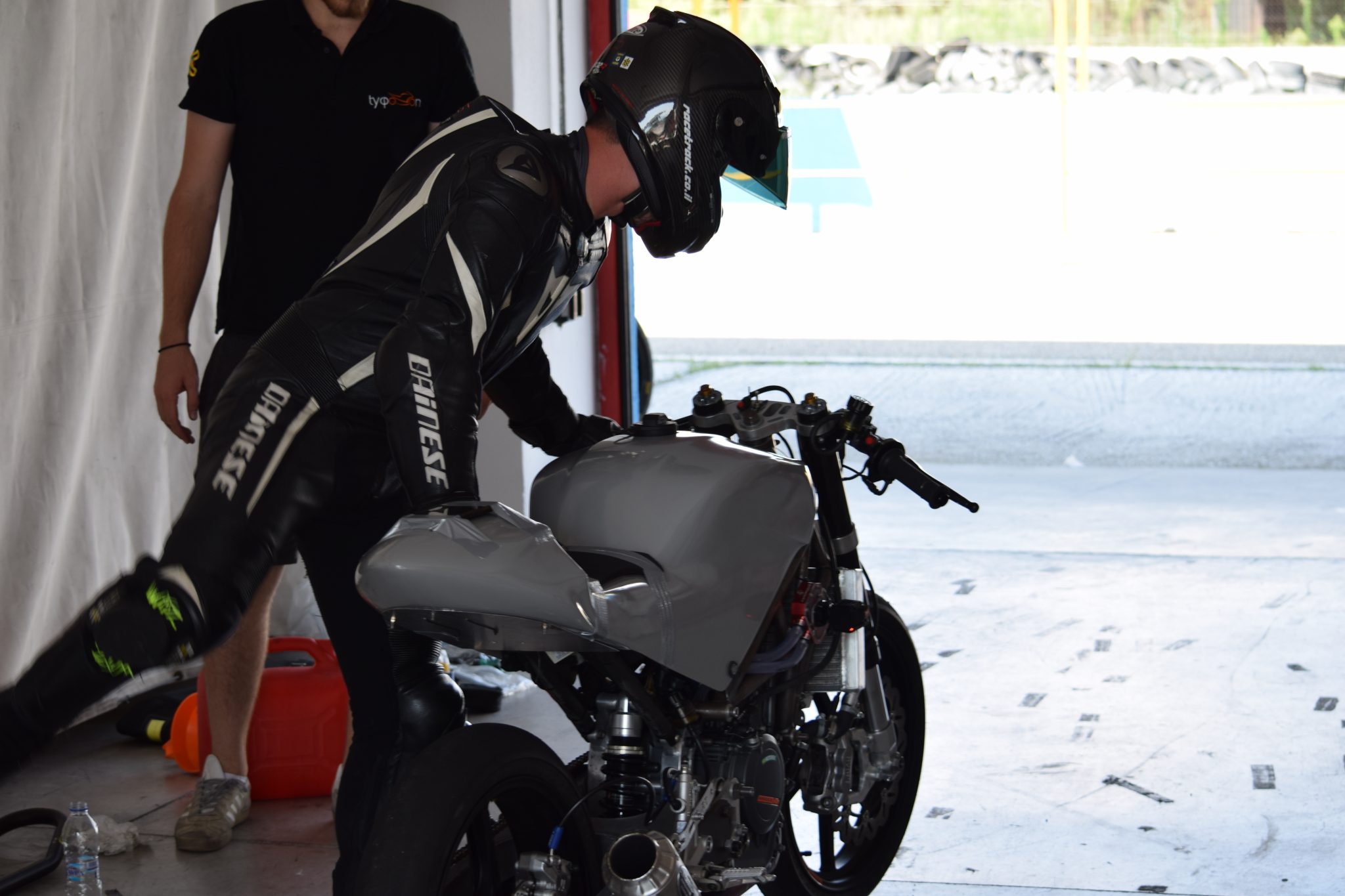 Η ολοκλήρωση του ελέγχου των συστημάτων που πλαισιώνουν το όχημα, σήμανε την έναρξη μιας νέα περιόδου, την περίοδο των δοκιμών του οχήματος στην πίστα. Η πρώτη δοκιμή, η οποία ολοκληρώθηκε αισίως την περασμένη Κυριακή, ήταν γεμάτη με ευχάριστα συναισθήματα, καθώς οι επιδόσεις της μοτοσυκλέτας ξεπέρασαν κάθε προσδοκία. Ωστόσο, υπάρχουν ακόμα περιθώρια βελτίωσης που θα καταστίσουν το όχημα ανταγωνιστικό και ικανό να διεκδικήσει μία καλή θέση στον διαγωνισμό.