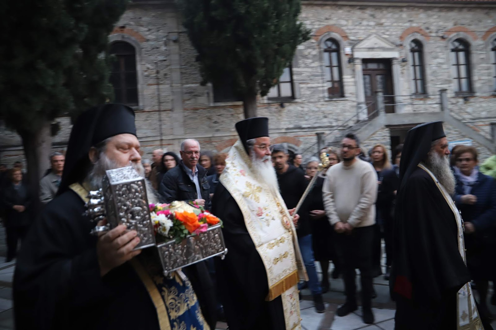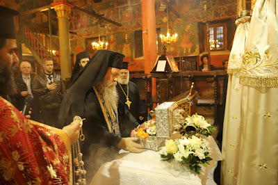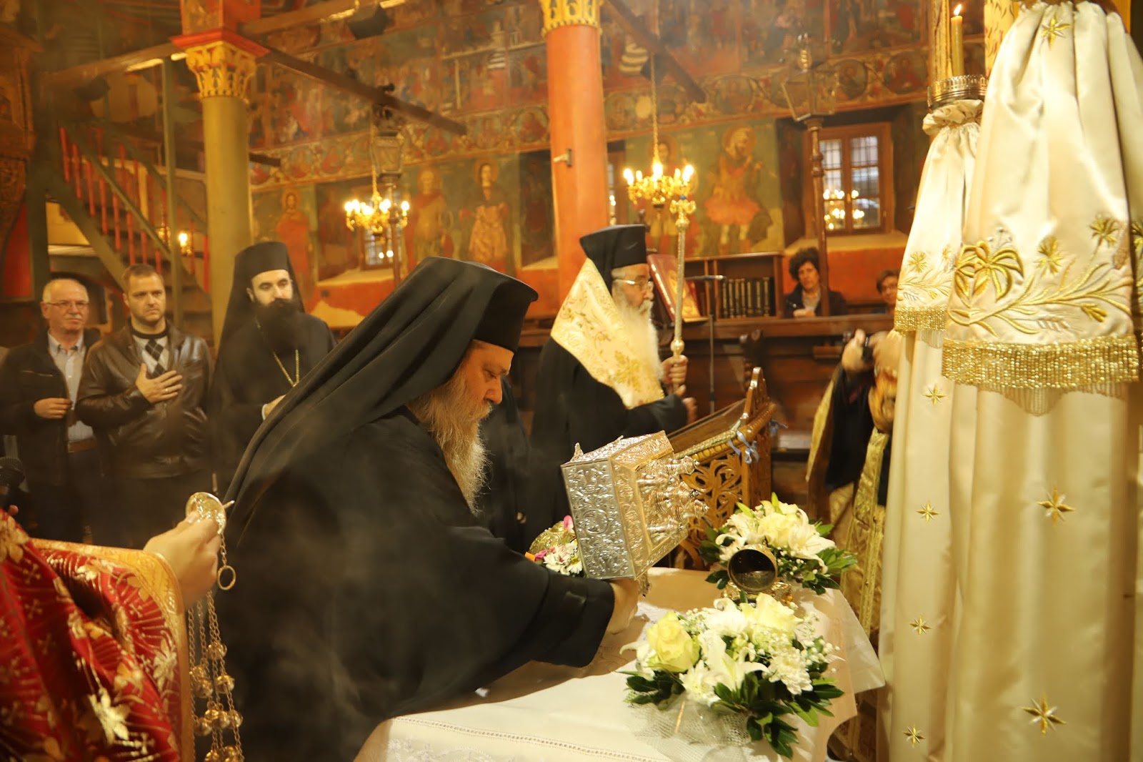 Αρκετοί πιστοί, χθες Τετάρτη, στην υποδοχή της Τίμιας Κάρας του Όσιου Δαυίδ, στον Ι.Ν. Κοιμήσεως της Θεοτόκου στο Βελβεντό παρουσία του Μητροπολίτη Σερβίων και Κοζάνης κ.κ. Παύλου.