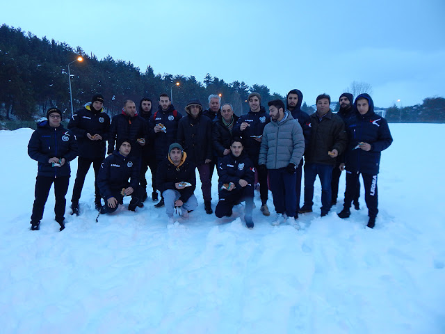 Παρά το πολύ χιόνι που έντυσε το στρατιωτικό γήπεδο ποδοσφαιριστές προπονητής και διοίκηση του Μακεδονικού σ’ ένα πολύ όμορφο και ζεστό περιβάλλον παρά το κρύο που επικρατούσε έκοψε την Βασιλόπιτα. Ο τυχερός που έτυχε το φλουρί ήταν ο Αποστόλης Γοδενόπουλος.