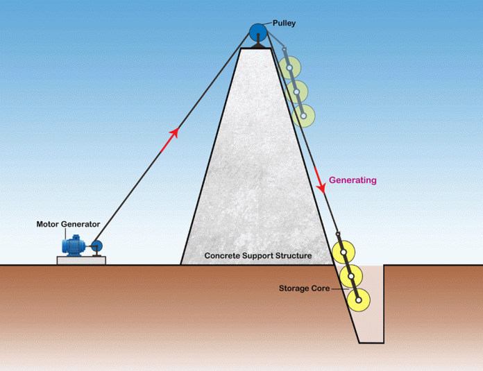 Η λύση της εταιρείας ares υλοποιείται με βαγονέτα τα οποία ανεβοκατεβάζουν στην πλαγιά ενός λόφου μεγάλα βάρη, τα οποία στοιβάζουν στον άνω ή στον κάτω σταθμό. Τα βαγονέτα έχουν τα ίδια ηλεκτρικά μοτέρ, τα οποία είτε καταναλώνουν ενέργεια κατά την άνοδό τους, είτε παράγουν κατά την κάθοδο. Η ενέργεια αυτή λαμβάνεται από το δίκτυο ή παροχετεύεται πίσω σε αυτό, όταν υπάρξει ανάγκη.
