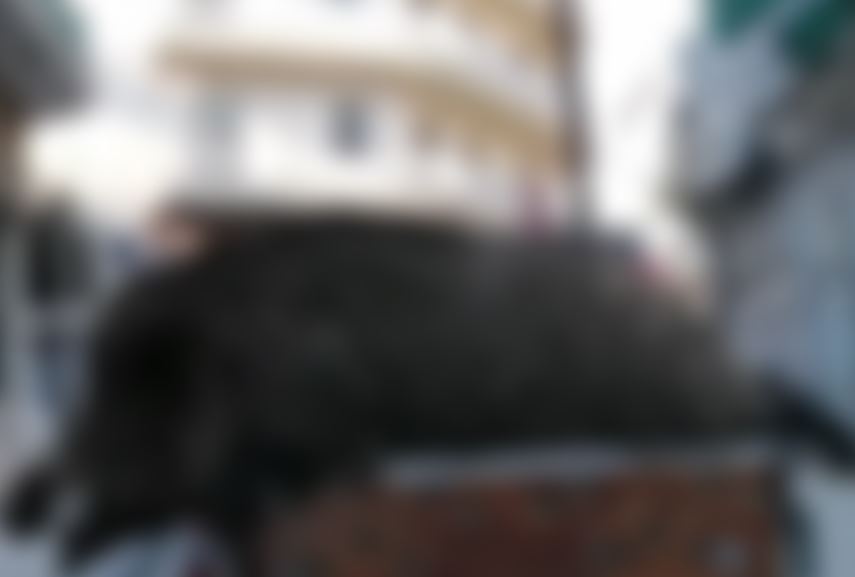 • Σωστά! Μόνο που στη συγκεκριμένη περίπτωση δεν πρόκειται για δημόσια έκθεση θηράματος, αλλά για μεταφορά, απ’ το χώρο κυνηγιού στο χώρο όπου θα γίνει η εκδορά, ο τεμαχισμός και η διανομή. Επιτέλους, σοβαρευτείτε! Το συγκεκριμένο καπρί φαίνεται για πάνω από 120-130 κιλά, πώς θέλετε να μεταφερθεί; Με ταξί: Έλεος με τις ανοησίες!