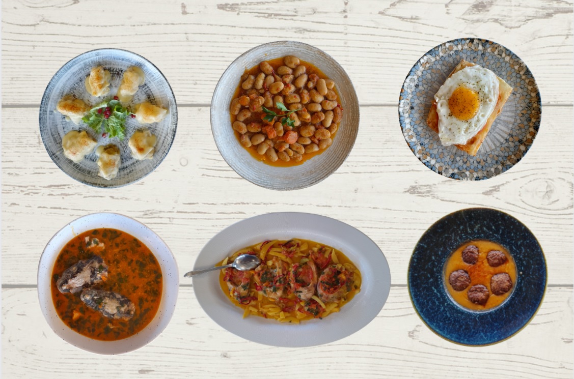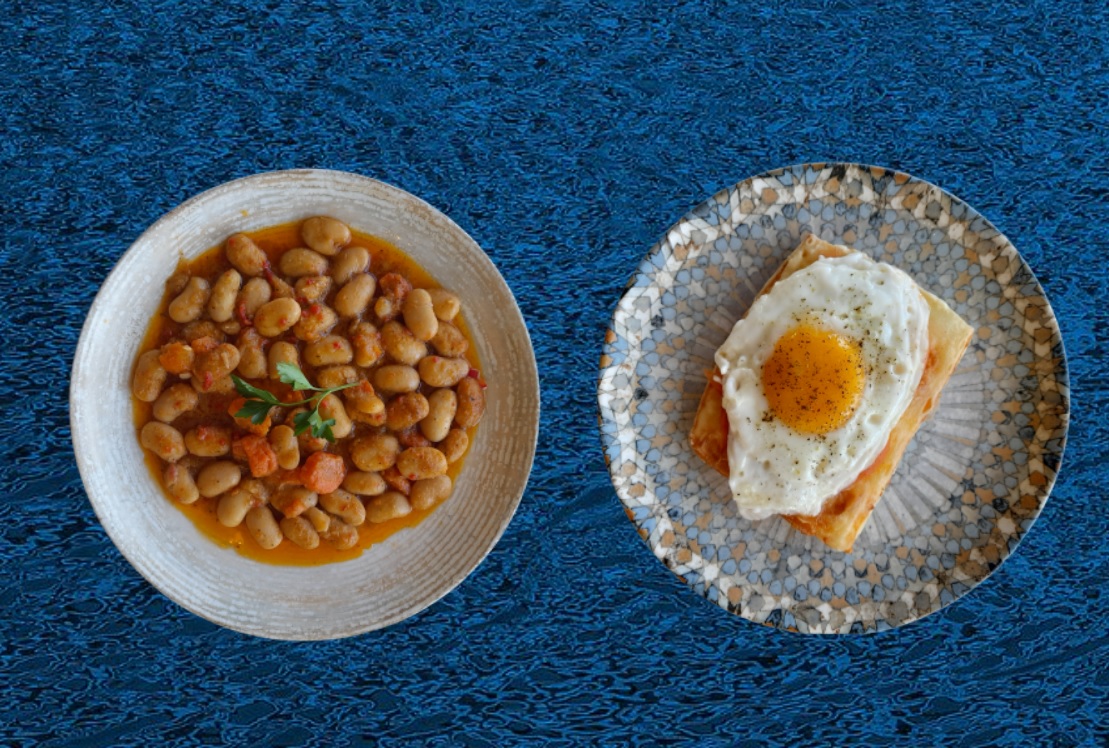Στο τραπέζι, πιάτα που ο ίδιος ετοίμασε με μεράκι και αγάπη, προκειμένου να μας τα παρουσιάσει, «βυθίζοντάς» μας σε μία μοναδική γαστρονομική εμπειρία made in Καστοριά. Σαρμάδες και σαλάτα αρμιά, κεφτεδάκια «βουτηγμένα» σε σάλτσα μακάλο, τυρί μπάτζο σαγανάκι με αυγό και βέβαια τα φημισμένα φασόλια Καστοριάς, γιάντες στον φούρνο.