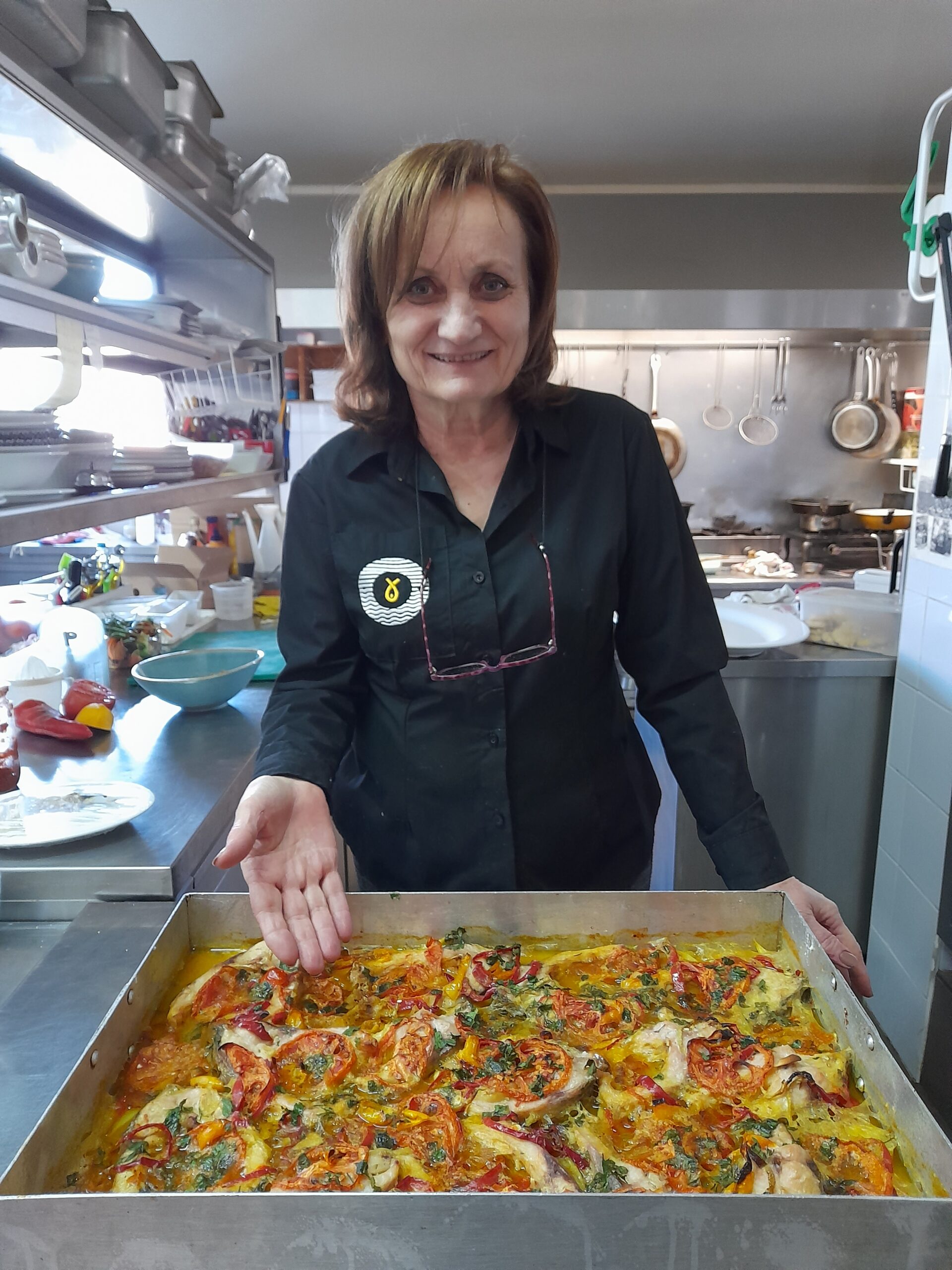 «Τοποθετούμε το ψάρι στον λαδωμένο ταβά, προσθέτοντας γύρω-γύρω ψιλοκομμένες πατάτες, τομάτες και πιπεριές. Σκόρδο, μαϊντανός, τριμμένη φρυγανιά και λίγο κόκκινο πιπέρι πριν μπει στο φούρνο, απογειώνουν τη γεύση του» λέει η κυρία Γαϊτάνη, σημειώνοντας πως στο σερβίρισμα το γριβάδι στον ταβά συνοδεύεται πάντα με λευκό κρασί.