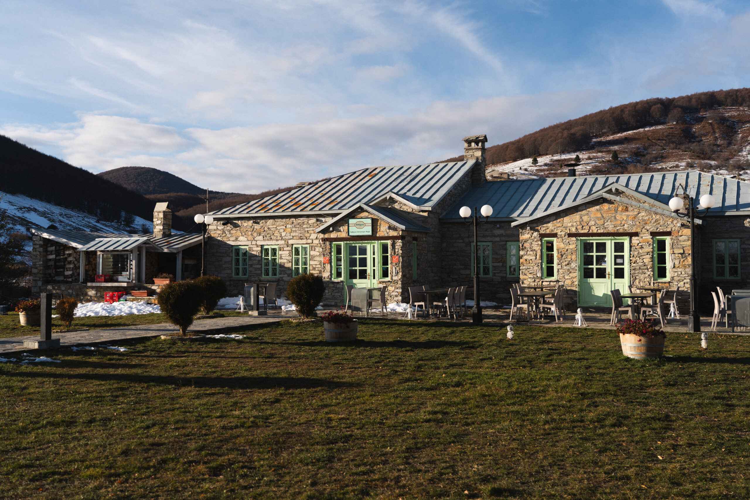Οι λιγοστές ακτίνες του ήλιου που βρίσκονται πλέον στον ουρανό σηματοδοτούν την ολοκλήρωση της πρώτης μέρας. Η ημέρα κλείνει με κουβέντα και απλόχερη προσφορά ζεστού τσάι από τον Ηλία, τον ιδιοκτήτη του ξενώνα που διαμένουμε στο γειτονικό Λέχοβο.