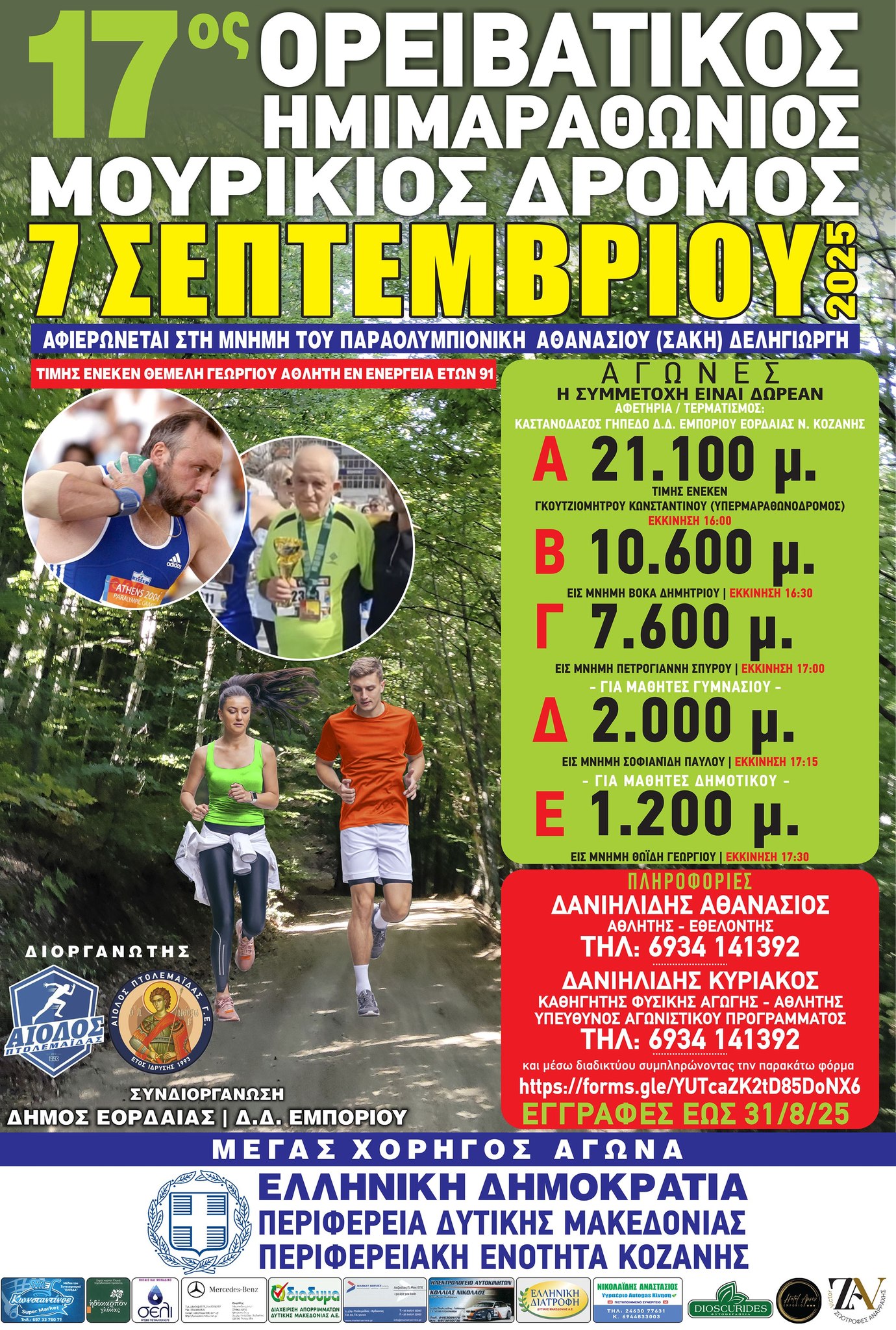 Ιδιαίτερα, ευχαριστώ θερμά το ΕΚΑΒ Κοζάνης και το προσωπικό του, τον κ. Γκιαγκιά Παναγιώτη, τον κ. Κιουλτζή Ιωάννη και την κα Μουστάκα Βάια, καθώς και τον Αντιπεριφερειάρχη Π.Ε. Κοζάνης κ. Κων/νο Βύζα, για την άμεση και καθοριστική τους επέμβαση σε περιστατικό που συνέβη κατά τη διάρκεια του αγώνα. Χάρη στην επαγγελματική τους κατάρτιση και την ταχύτατη ανταπόκρισή τους, κατάφεραν να επαναφέρουν στη ζωή έναν συναθλητή μας που υπέστη ανακοπή, προσφέροντας ένα παράδειγμα υψηλής ευθύνης και ανθρωπιάς.
