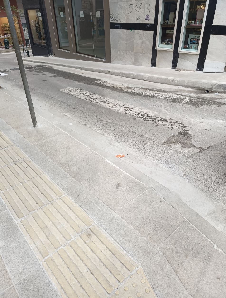 Ειλικρινά, δε μπορώ να καταλάβω το λόγο μιας τέτοιας παράλειψης σε νέο πεζοδρόμιο και το χειρότερο είναι πως η απέναντι πλευρά είναι εδώ και καιρό υπό κατασκευή και για να περάσει ένα καρότσι πρέπει να βγει στον κεντρικό δρόμο, με όποιο κίνδυνο αυτό συνεπάγεται.