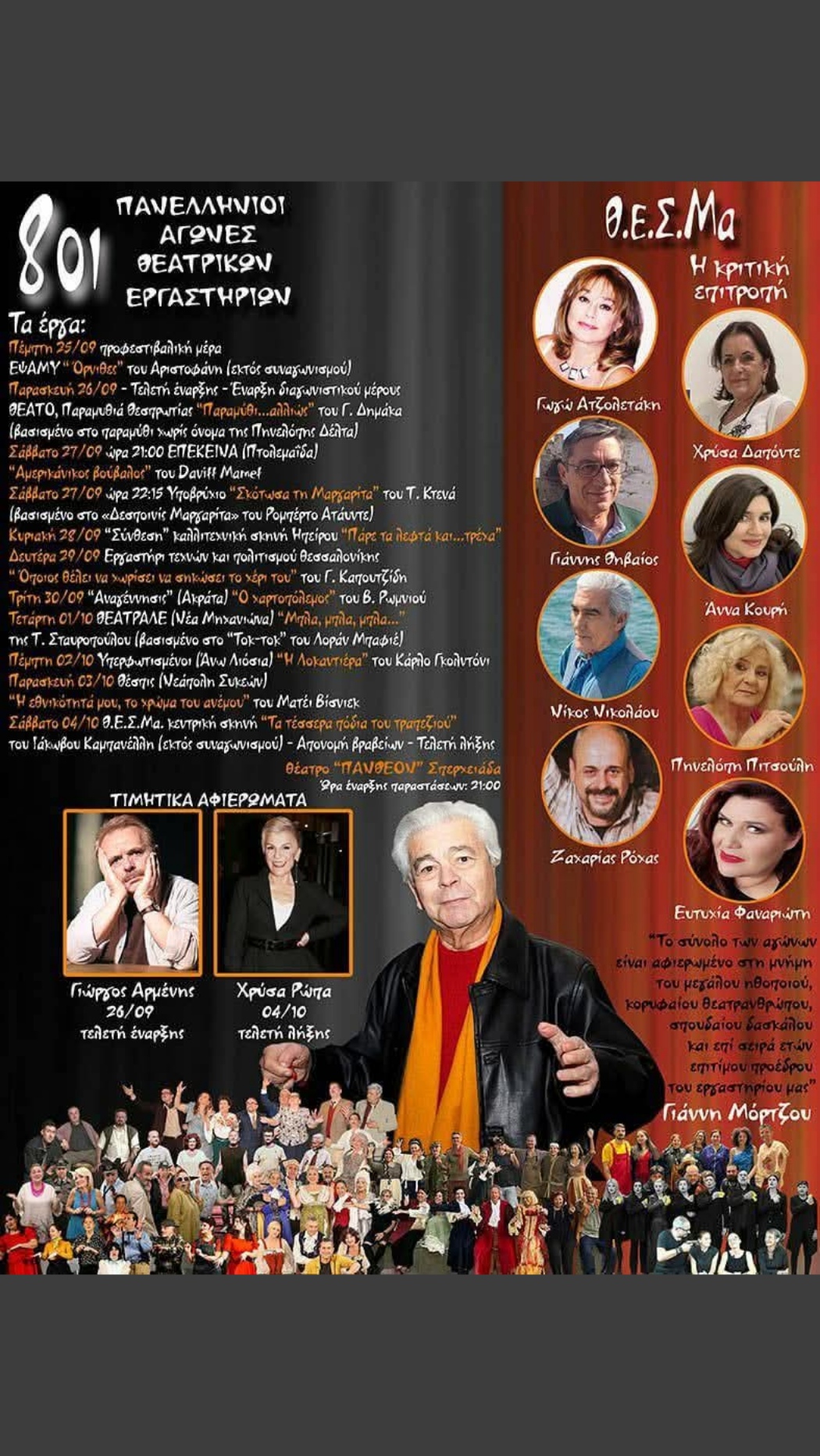 Ευχαριστούμε θερμά το Θεατρικό Εργαστήρι ΘΕΣΜα για την υπέροχη φιλοξενία και την άρτια διοργάνωση του φεστιβάλ καθώς και την κριτική επιτροπή για τα υπέροχα λόγια τους, που είναι αυτά που μας δίνουν δύναμη και κουράγιο να κάνουμε αυτό που αγαπάμε κάθε φορά και καλύτερα.