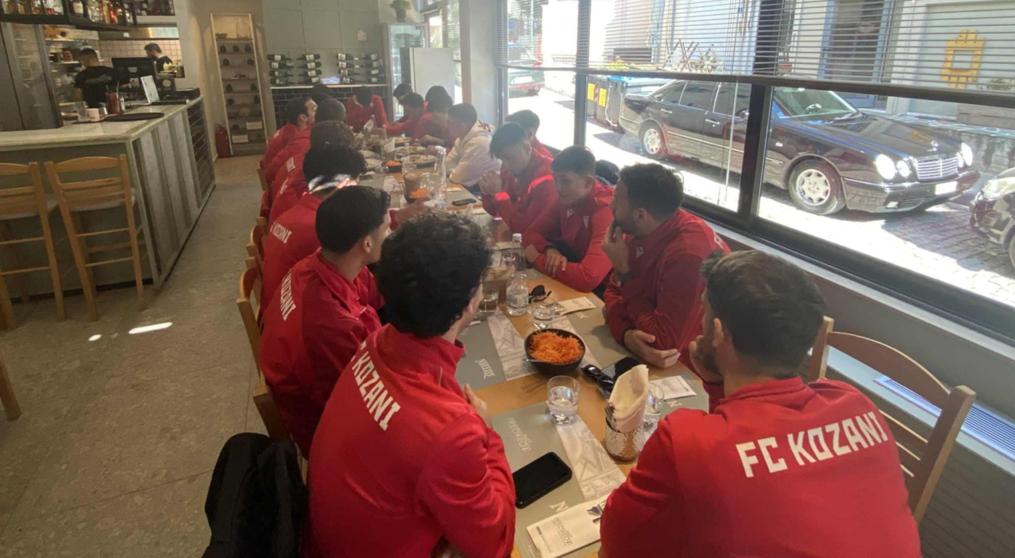 Λίγες ώρες πριν το μεγάλο παιχνίδι με τον Αστέρα Καρδίτσας στο ΔΑΚ Κοζάνης (16:00), η ομάδα του Φ.Σ. Κοζάνη γευμάτισε σε ζεστό και οικογενειακό κλίμα, δείχνοντας την ενότητα και το εξαιρετικό κλίμα που επικρατεί στις τάξεις του συλλόγου.