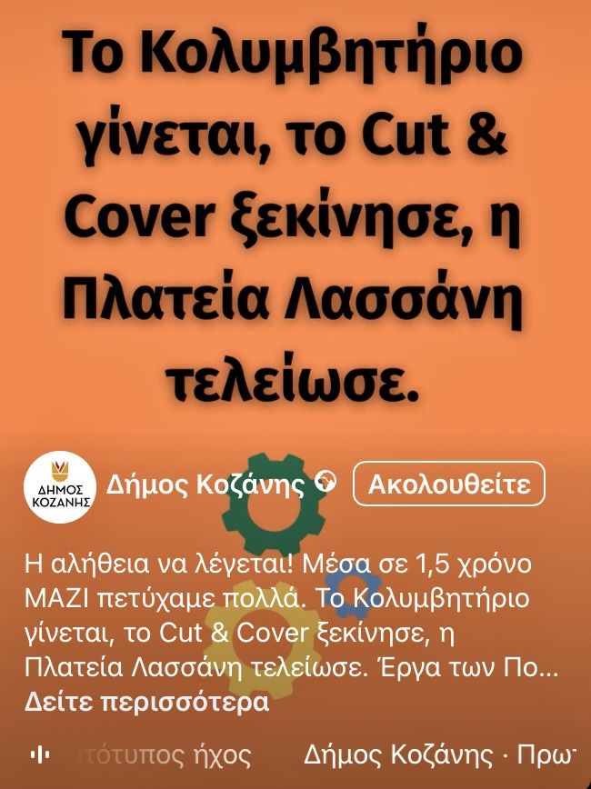 Η μόνη συμβολή του είναι ότι αφήνει τις Τεχνικές Υπηρεσίες του δήμου Κοζάνης να κάνουν τη δουλειά τους !