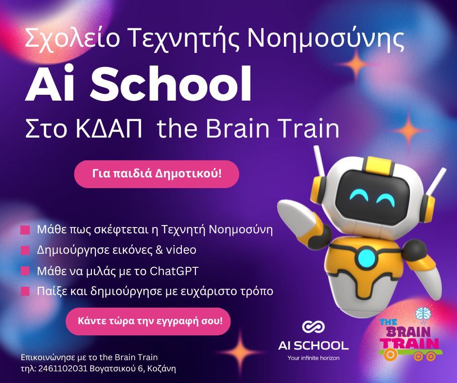 #AISchool #TheBrainTrain #ΚΔΑΠ #Kozani #ArtificialIntelligence #Education #FutureSkills #AIForKids #ΨηφιακήΕκπαίδευση