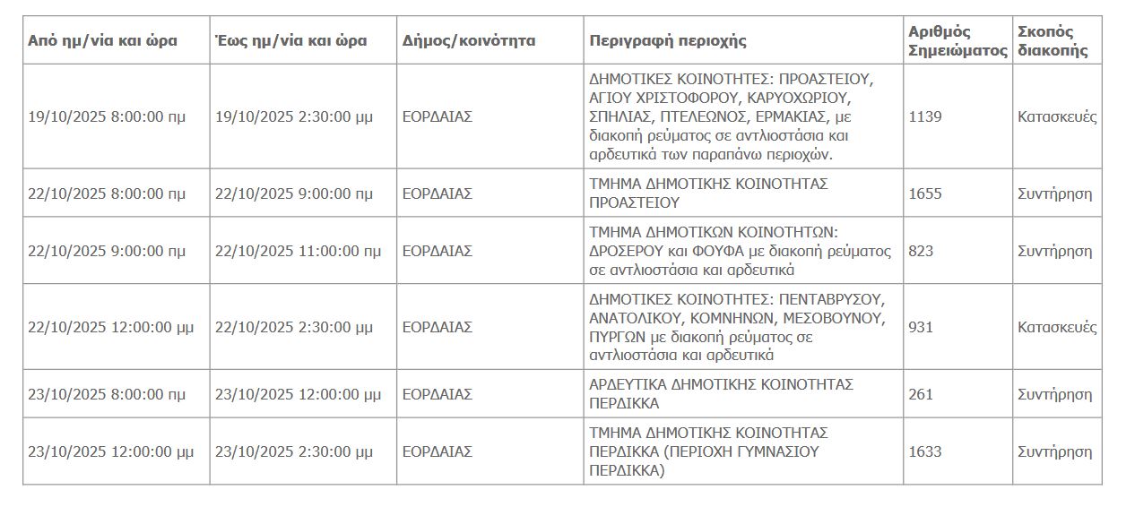 ΔΕΔΔΗΕ Α.Ε. – Προγραμματισμένες Διακοπές Ηλεκτρικού Ρεύματος τις επόμενες μέρες