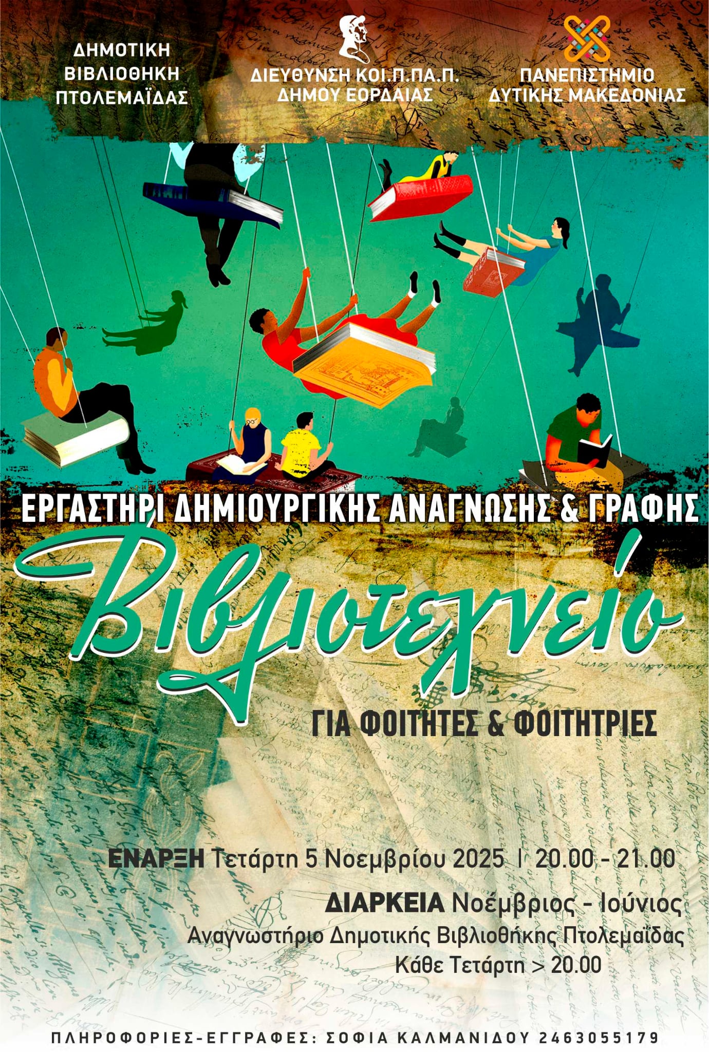 📅 Οι συναντήσεις θα πραγματοποιούνται κάθε δεύτερη Τετάρτη, από 20:00 έως 21:00, στο Αναγνωστήριο της Δημοτικής Βιβλιοθήκης Πτολεμαΐδας.