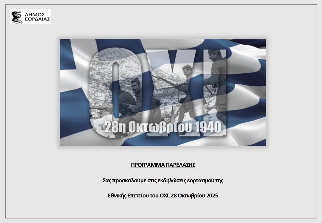 Δήμος Εορδαίας: Το πρόγραμμα εορτασμού της Εθνικής Επετείου του ΟΧΙ, 28 Οκτωβρίου 2025