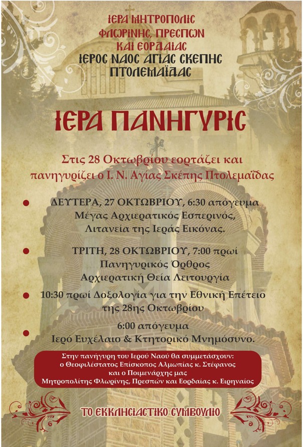 Πανήγυρις Ιερού Ναού Αγίας Σκέπης Πτολεμαΐδας