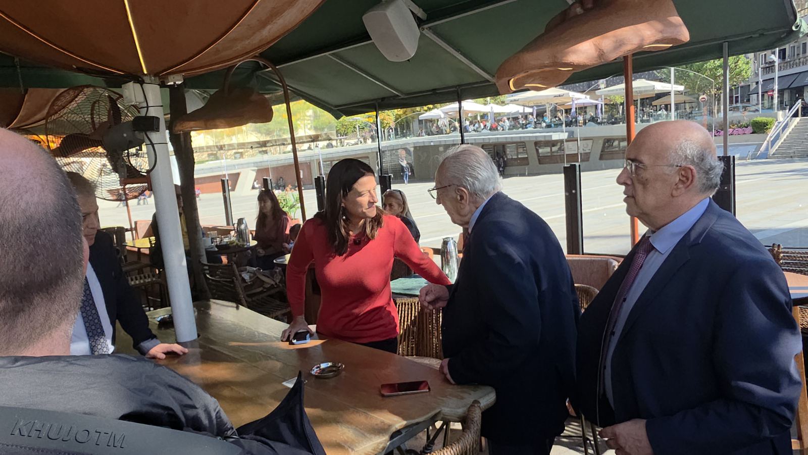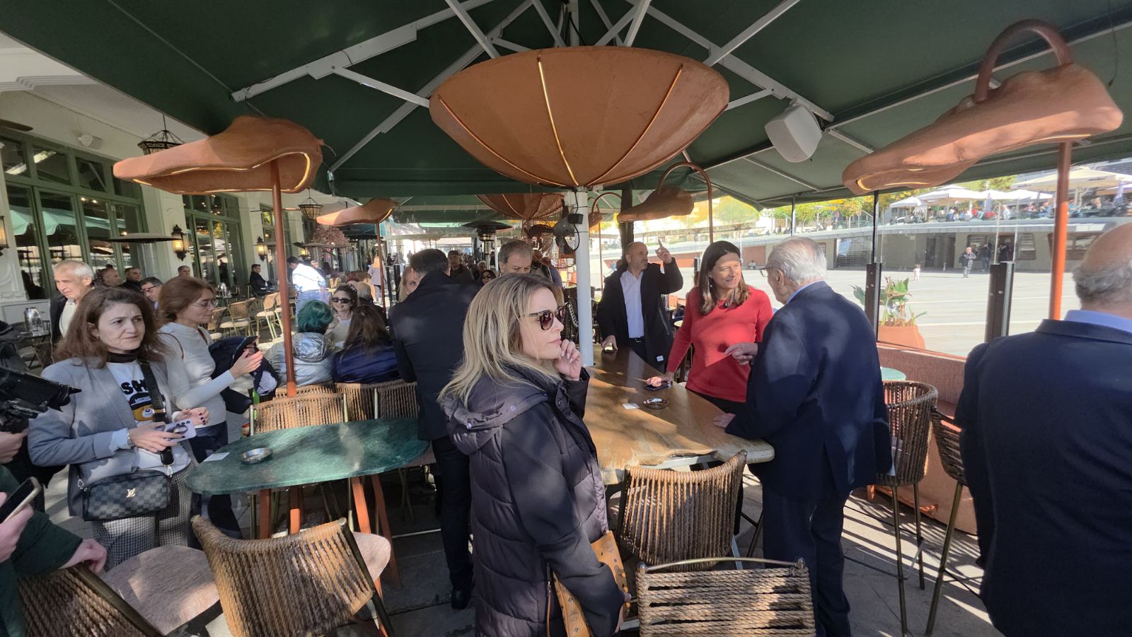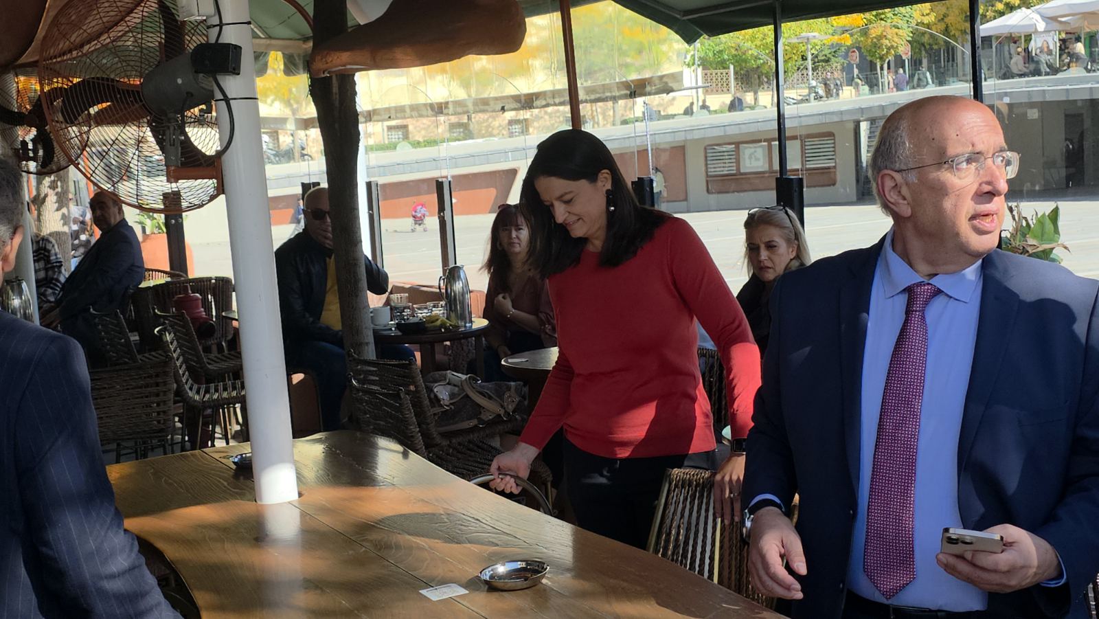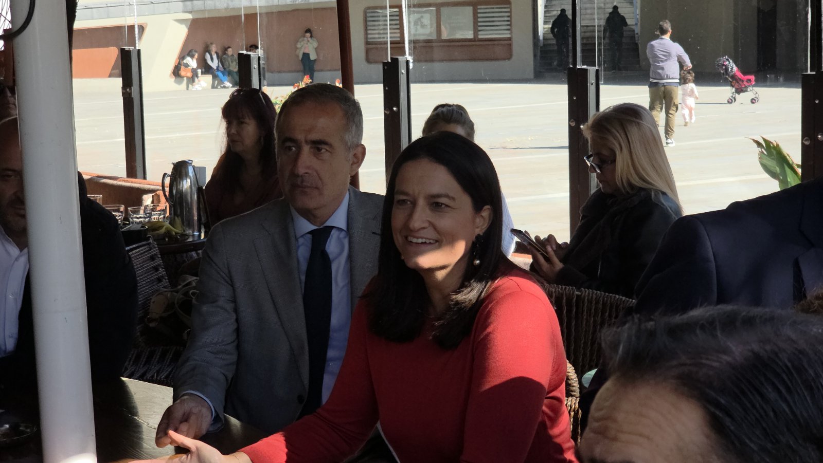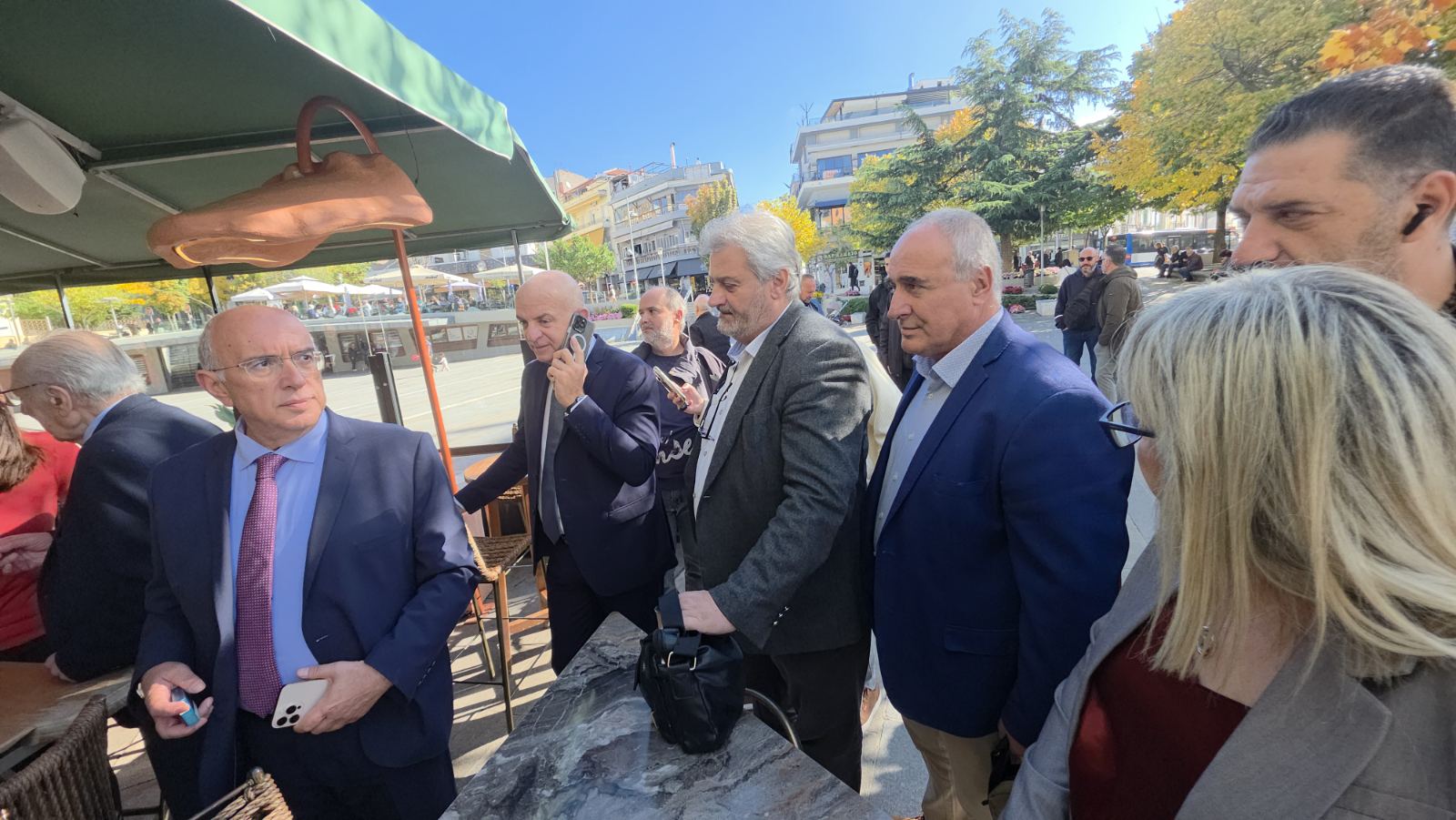 Σε κεντρικό καφέ της Κοζάνη η Υπουργός Εργασίας και Κοινωνικής Ασφάλιση Νίκη Κεραμέως.