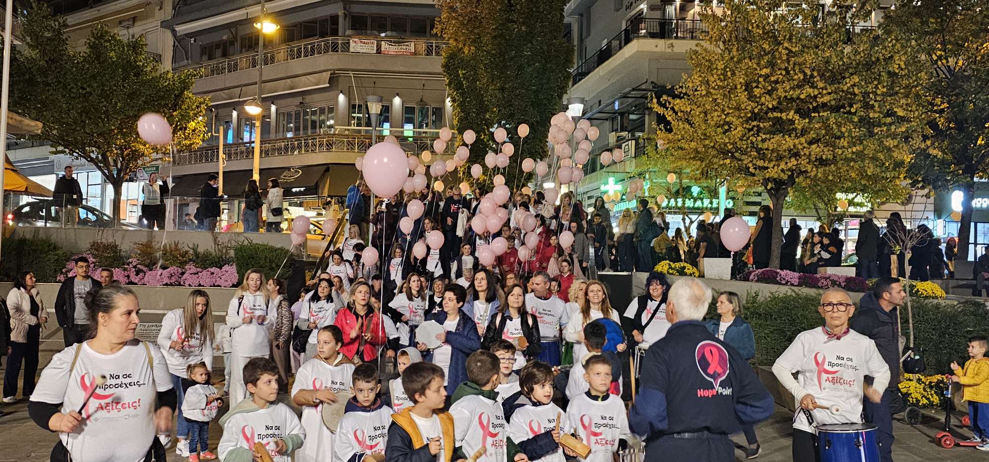 Για ακόμη μία χρονιά, η «Ροζ Πορεία Ελπίδας» ένωσε φωνές και καρδιές στην Κοζάνη, στέλνοντας το πιο δυνατό μήνυμα ζωής, πρόληψης και ελπίδας κατά του καρκίνου του μαστού. Η δράση πραγματοποιήθηκε το απόγευμα της Παρασκευής 24 Οκτωβρίου 2025, με διοργανωτές τον Σύλλογο Καρκινοπαθών Κοζάνης και το Διαγνωστικό Κέντρο “Ιπποκράτης”, υπό την υποστήριξη του Δήμου Κοζάνης. Η πορεία ξεκίνησε στις 19:00 από το κεντρικό κτίριο του «Ιπποκράτη» (Φιλίππου Β΄ 1), με πλήθος πολιτών να συμμετέχει, κρατώντας ροζ μπαλόνια και αναμμένα φαναράκια. Συνοδεύτηκε μουσικά από τη «Συνωμοσία των Κρουστών» του Δ.Ω.Κ., δημιουργώντας ένα συγκινητικό και ελπιδοφόρο κλίμα στους δρόμους της πόλης. Η πορεία κατέληξε στο Δημαρχείο Κοζάνης, όπου φωταγωγήθηκαν σε ροζ χρώμα το Δημαρχείο και το Καμπαναριό. Η βραδιά συνεχίστηκε με μουσικό event με DJ, ενώ πραγματοποιήθηκε και κλήρωση με δώρα 10 δωρεάν τομοσυνθέσεων στον υπερσύγχρονο μαστογράφο Hologic 3Dimensions και 10 συλλεκτικά μαντήλια της σχεδιάστριας Άννας Μαρίας Μαζαράκη, αφιερωμένα στον μήνα πρόληψης. Η «Ροζ Πορεία Ελπίδας» ολοκληρώθηκε μέσα σε συγκίνηση, χαμόγελα και θετική ενέργεια, υπενθυμίζοντας πως η έγκαιρη πρόληψη σώζει ζωές και ότι ο αγώνας κατά του καρκίνου του μαστού είναι κοινός για όλους.