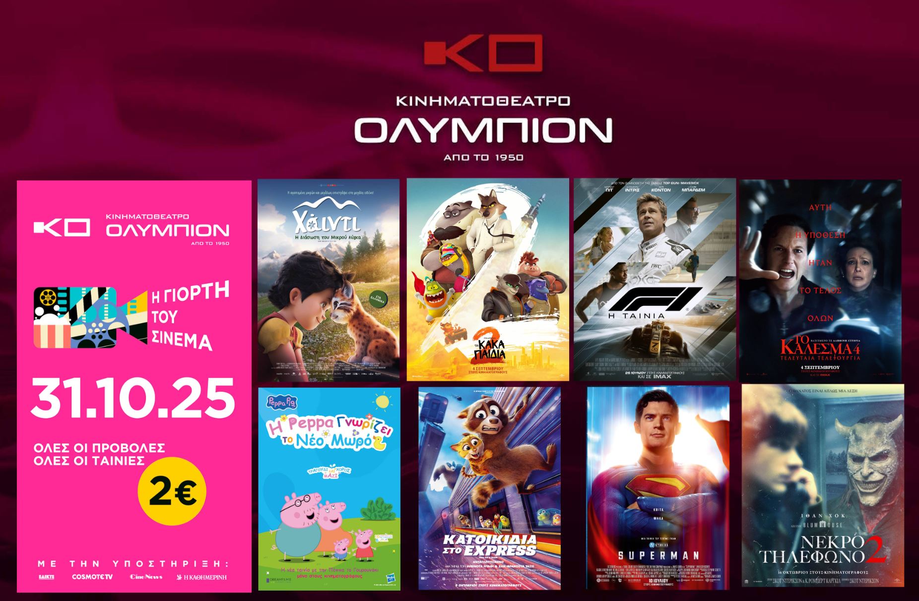 ΓΙΟΡΤΗ ΤΟΥ ΣΙΝΕΜΑ – Παρασκευή 31 Οκτωβρίου 2025