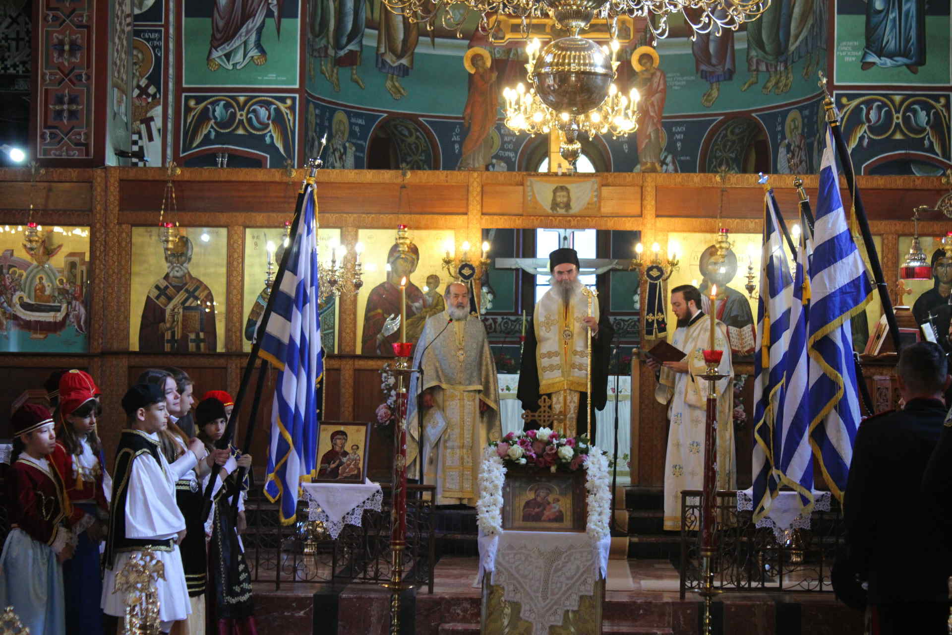 Χωροστατούντος του Θεοφιλέστατου Επισκόπου Αμφιπόλεως κ.κ. Χριστοφόρου, τελέστηκε Όρθρος και Θεία Λειτουργία στον Ιερό Ναό Αγίου Γεωργίου, ενώ ακολούθησε η επίσημη δοξολογία και η επιμνημόσυνη δέηση στην Κεντρική Πλατεία Σερβίων. Ο πανηγυρικός της ημέρας εκφωνήθηκε από τον εκπαιδευτικό του 4ου Δημοτικού Σχολείου Σερβίων, Γεώργιο Χατζίδη, ο οποίος αναφέρθηκε με θερμά λόγια στη σημασία της ημέρας και στα ιδανικά που ενέπνευσαν τους προγόνους μας.