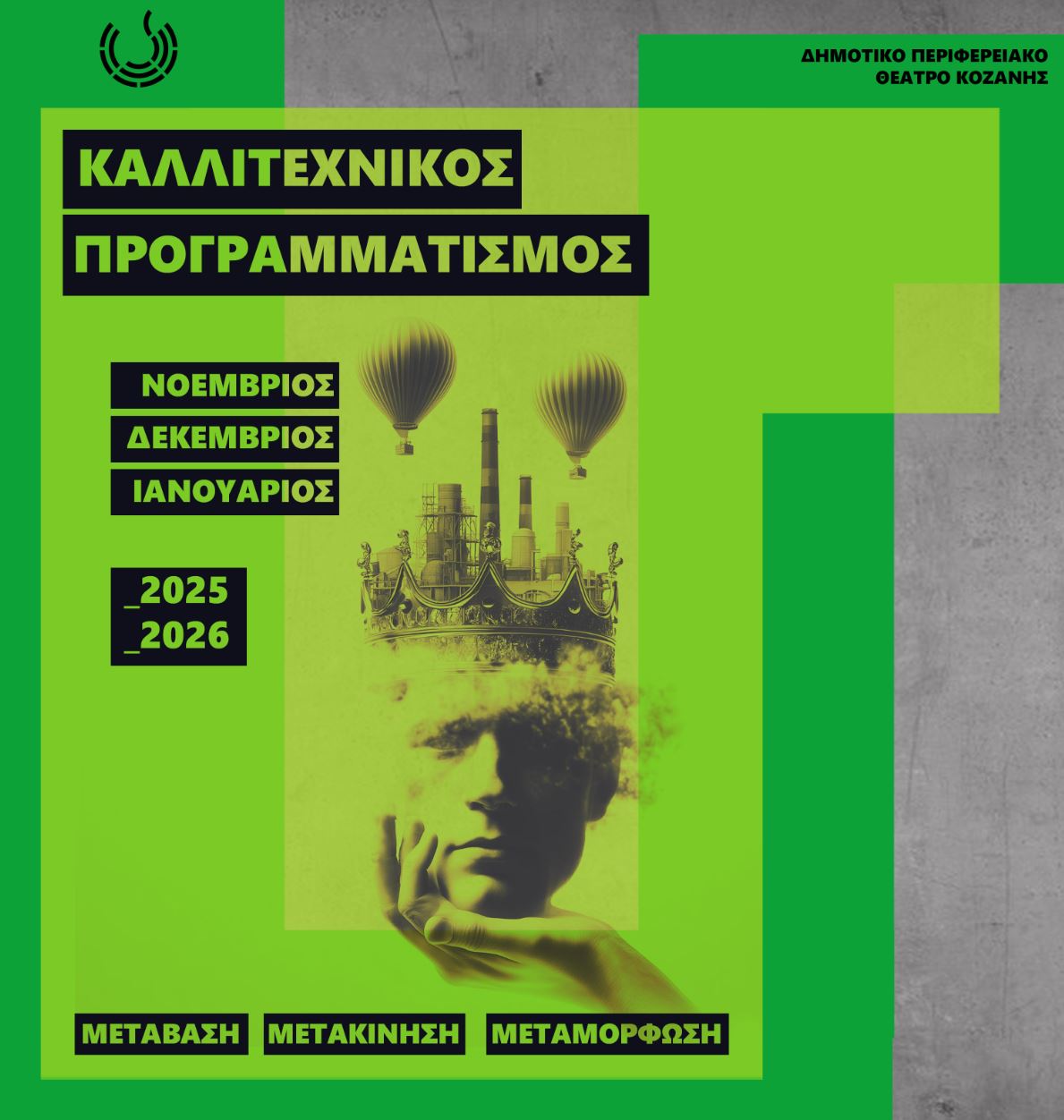 Σε ένα περιβάλλον που όλα αλλάζουν, σε μια μεταιχμιακή χρονική στιγμή όπου -λόγω της απολιγνιτοποίησης- η Κοζάνη και ολόκληρη η Δυτική Μακεδονία μεταβαίνει σε κάτι νέο, άγνωστο και επισφαλές, επιλέγουμε συνειδητά να δούμε αυτή την αλλαγή όχι με φόβο, αλλά ως πρόσκληση να αντιμετωπίσουμε διαφορετικά τον εαυτό μας και τον κόσμο.