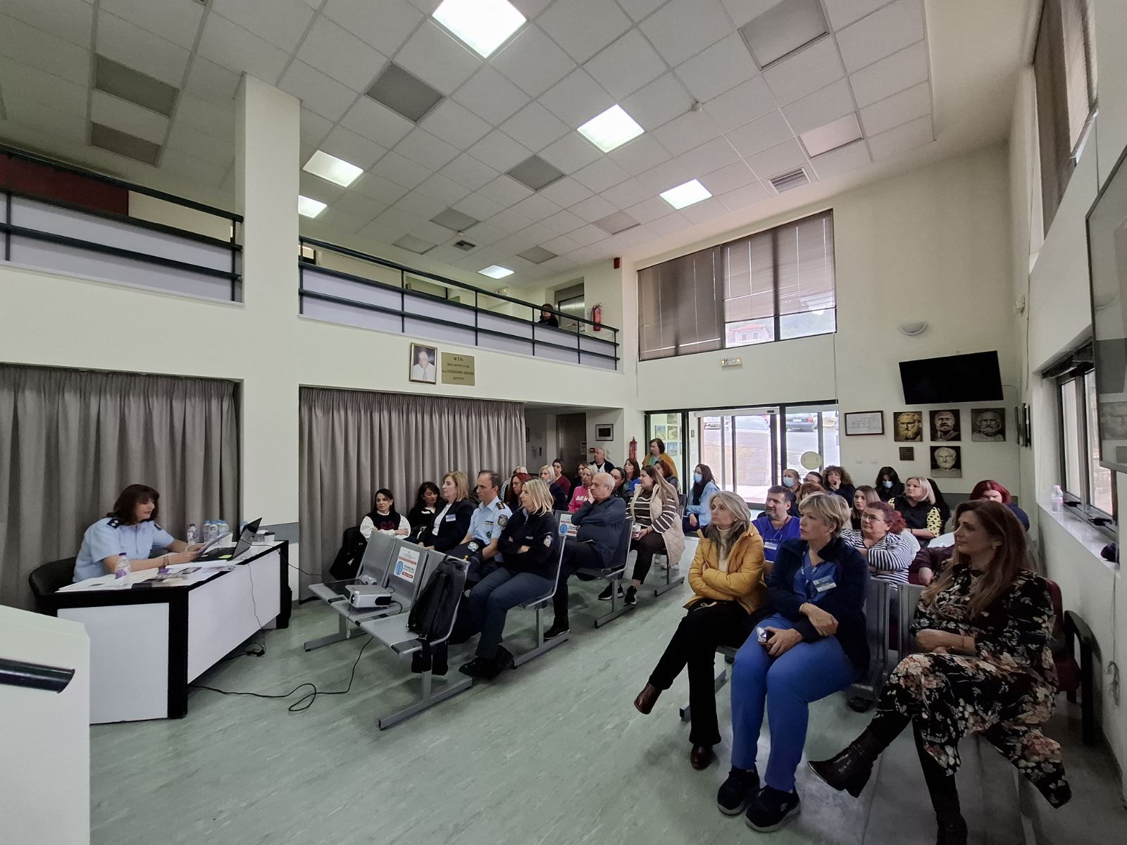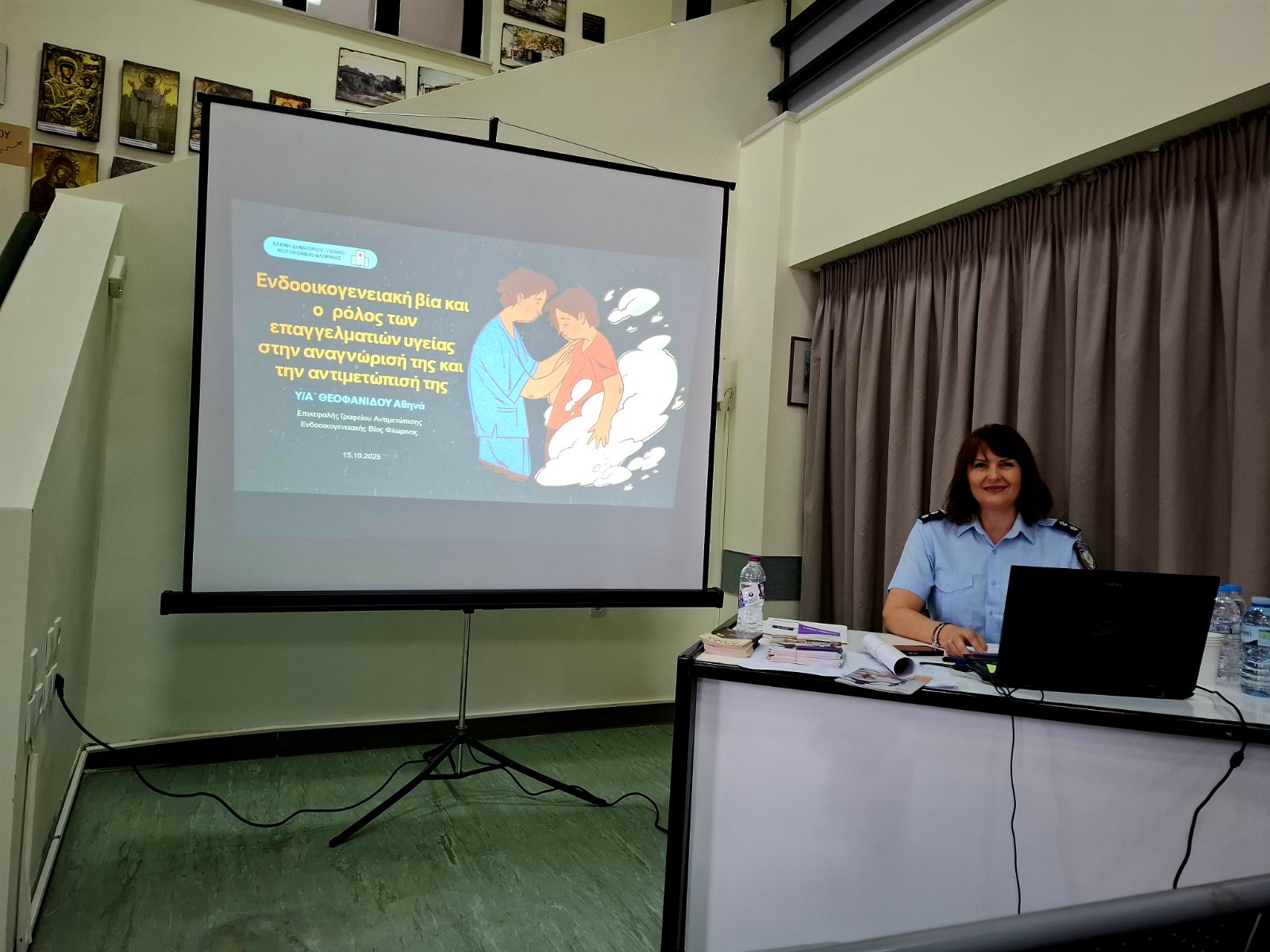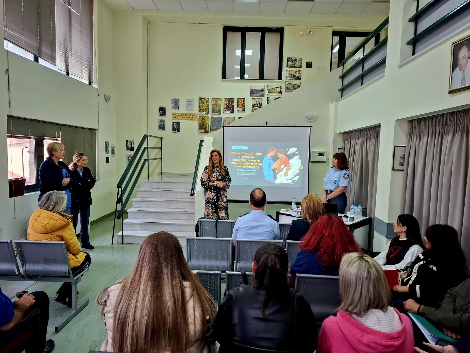 H Επικεφαλής και στελέχη του Γραφείου Αντιμετώπισης Ενδοοικογενειακής Βίας Φλώρινας, σε συνεργασία με στελέχη του Συμβουλευτικού Κέντρου του Δήμου Φλώρινας, πραγματοποίησαν ενημερωτική διάλεξη στο ιατρικό και νοσηλευτικό προσωπικό του Γενικού Νοσοκομείου Φλώρινας «Ελένη Δημητρίου», στο πλαίσιο εκδήλωσης που διοργάνωσαν η Διοίκηση του Νοσοκομείου Φλώρινας και ο Σύλλογος Νοσηλευτών Νομού Φλώρινας.