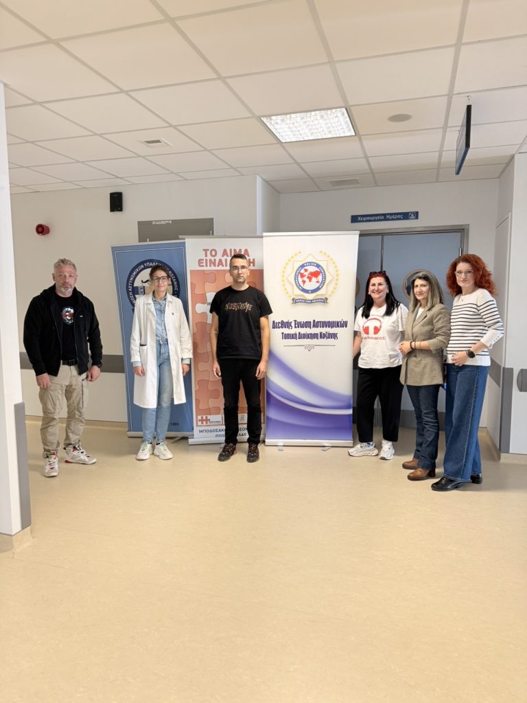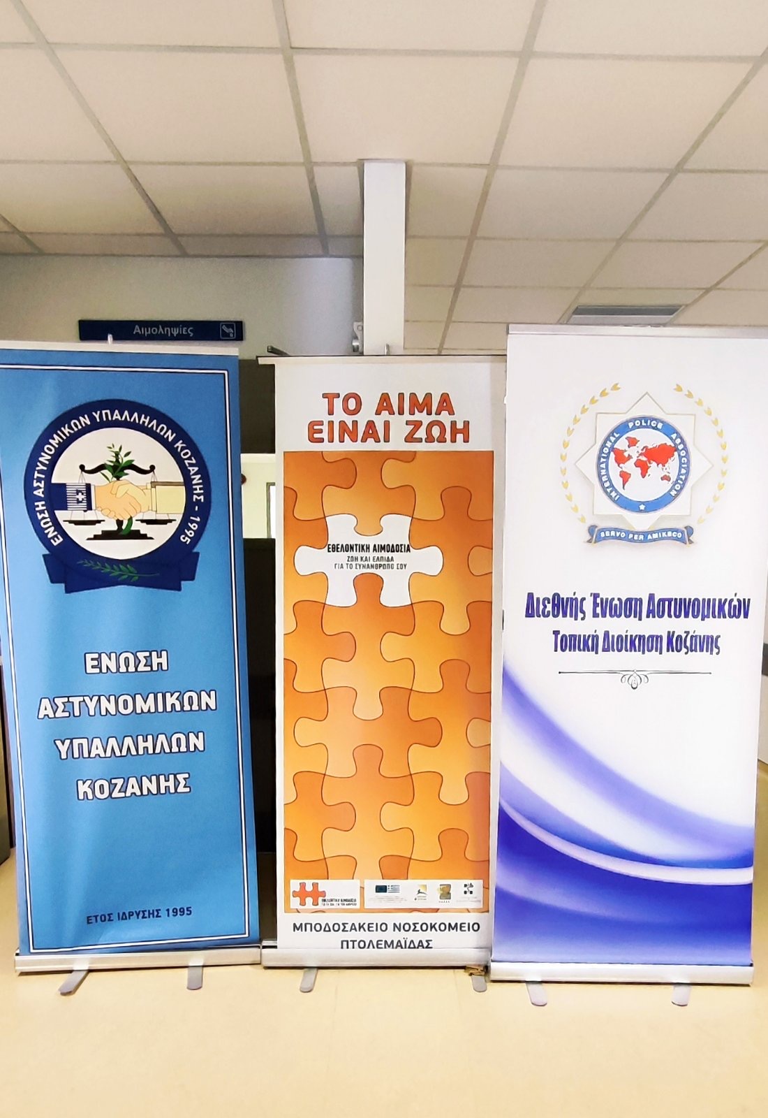 Η Ένωση Αστυνομικών Υπαλλήλων Κοζάνης, σε συνεργασία με την Τοπική Διοίκηση Κοζάνης της Διεθνούς Ένωσης Αστυνομικών (IPA), διοργάνωσε σήμερα, Δευτέρα 3 Νοεμβρίου 2025, στο Μποδοσάκειο Νοσοκομείο Πτολεμαΐδας, εθελοντική αιμοδοσία με στόχο τη στήριξη των συμπολιτών μας που έχουν ανάγκη από αίμα και παράγωγά του.