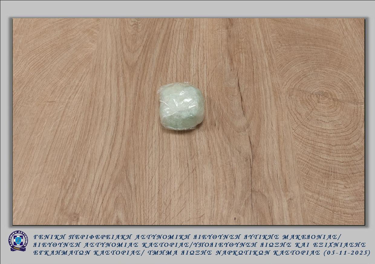 Μετά από συντονισμένη επιχείρηση αστυνομικών του Τμήματος Δίωξης Ναρκωτικών της Υποδιεύθυνσης Δίωξης και Εξιχνίασης Εγκλημάτων Καστοριάς, συνελήφθη την 01-11-2025 τις μεσημβρινές ώρες, σε περιοχή της Κοζάνης, 38χρονος ημεδαπός, για διακίνηση ναρκωτικών ουσιών, τις οποίες προμηθεύτηκε από 36χρονο ημεδαπό, σε βάρος των οποίων σχηματίσθηκε σχετική δικογραφία κακουργηματικού χαρακτήρα.