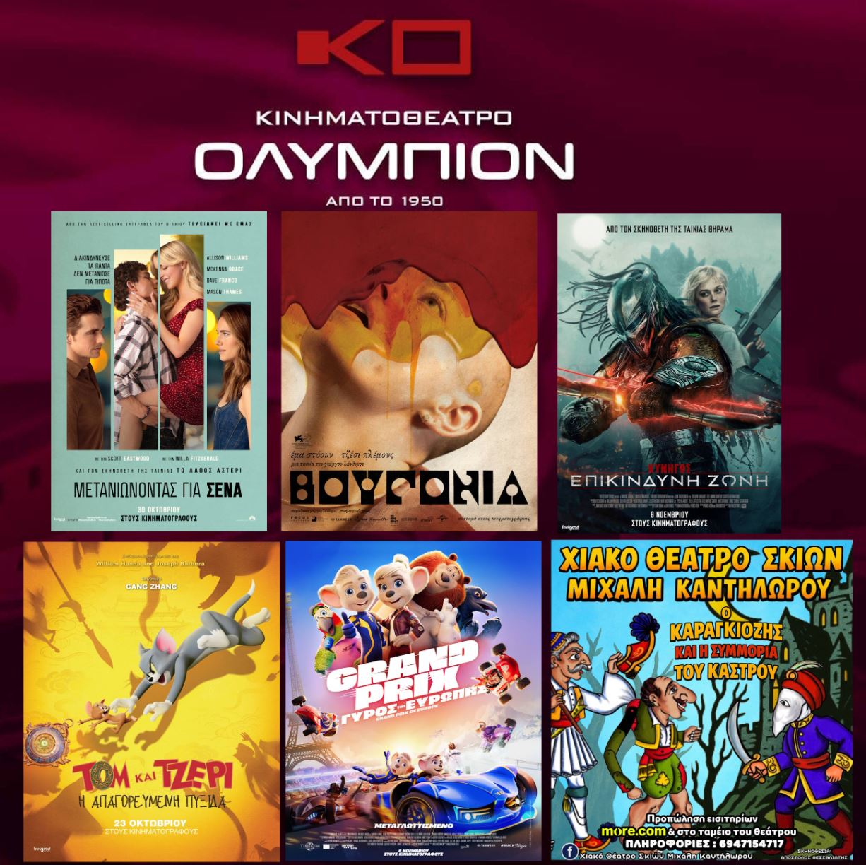 Για το πρόγραμμα του κιν/φου επισκεφτείτε την ιστοσελίδα μας: www.cineolympion.gr