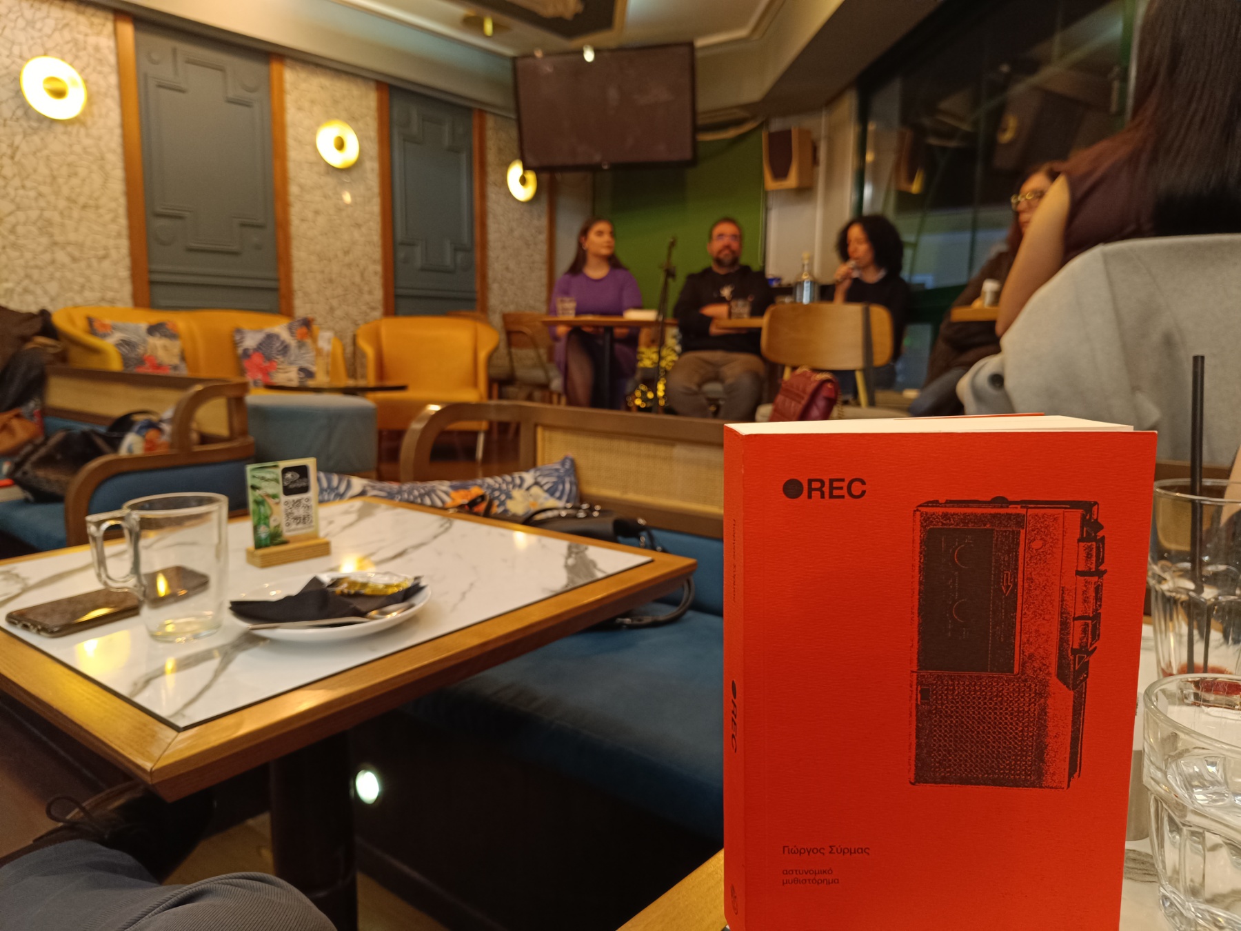Στο καφέ «Σιγά τον Πολυέλαιο» στην Πτολεμαίδα πραγματοποιήθηκε το βράδυ της Τετάρτης 5/11 η παρουσίαση του βιβλίου REC του συγγραφέα Γιώργου Σύρμα. Την εκδήλωση διοργάνωσαν η λέσχη ανάγνωσης «Βιβλιοροή», το βιβλιοπωλείο «Λέκτωρ» και οι εκδόσεις Ίκαρος. Την παρουσίαση προλόγισε η φιλόλογος Ελπίδα Πολυξενίδου και η δημοσιογράφος κ. Βαρνιτσιώτη Μαρία.