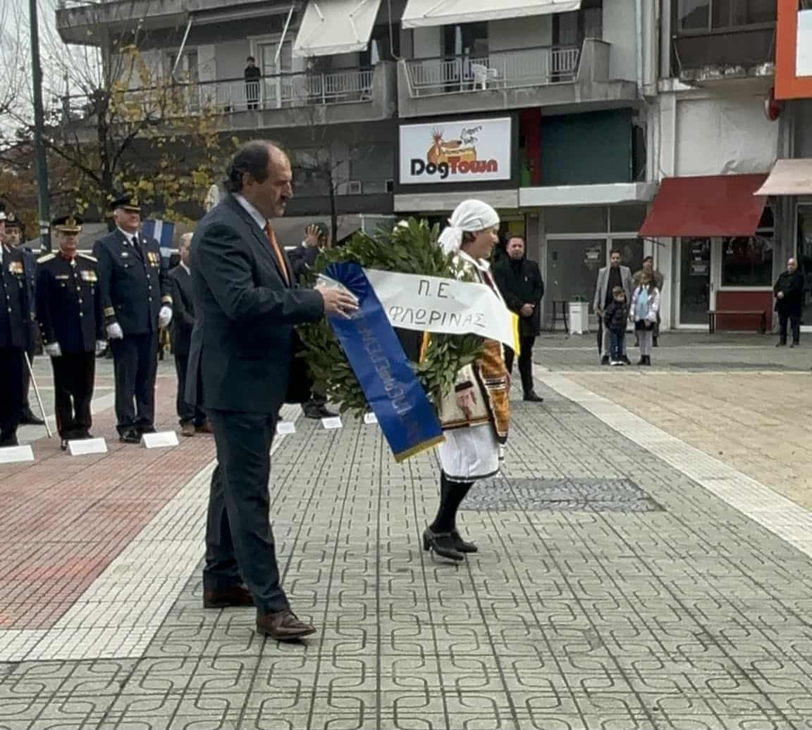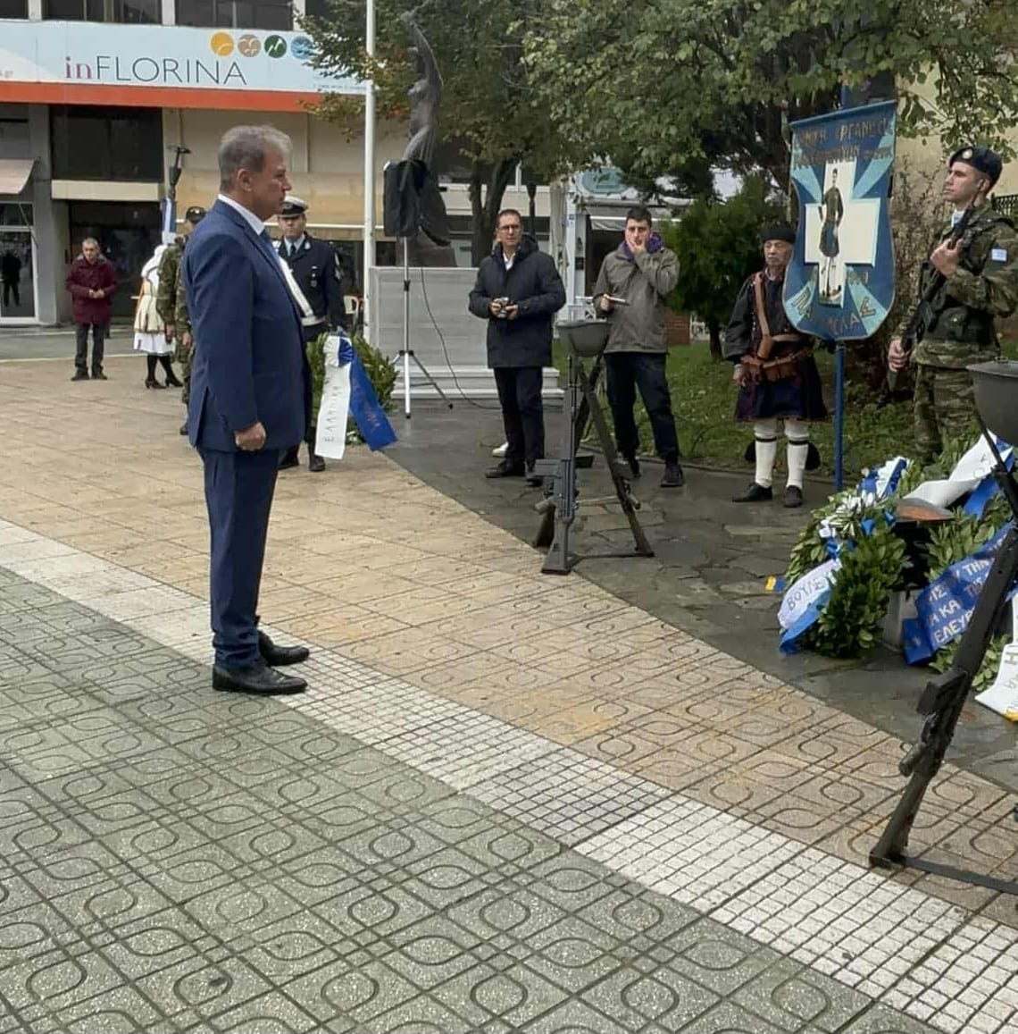 Νωρίς το πρωί, ο Δήμαρχος Φλώρινας κ. Βασίλης Γιαννάκης παρέδωσε τη σημαία και ακολούθησε η έπαρση στην κεντρική πλατεία της πόλης.