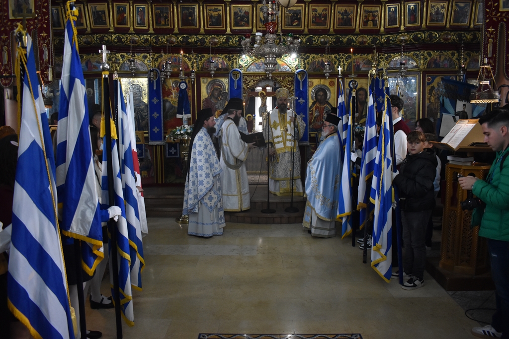 Στη συνέχεια, στον ιστορικό Ιερό Ναό Αγίου Γεωργίου τελέστηκε επίσημη Δοξολογία, συλλειτουργούντων του Σεβασμιωτάτου Μητροπολίτη Φλωρίνης, Πρεσπών και Εορδαίας κ. Ειρηναίου και του Θεοφιλέστατου Επισκόπου Αργυρουπόλεως κ. Αμβρόσιου.
